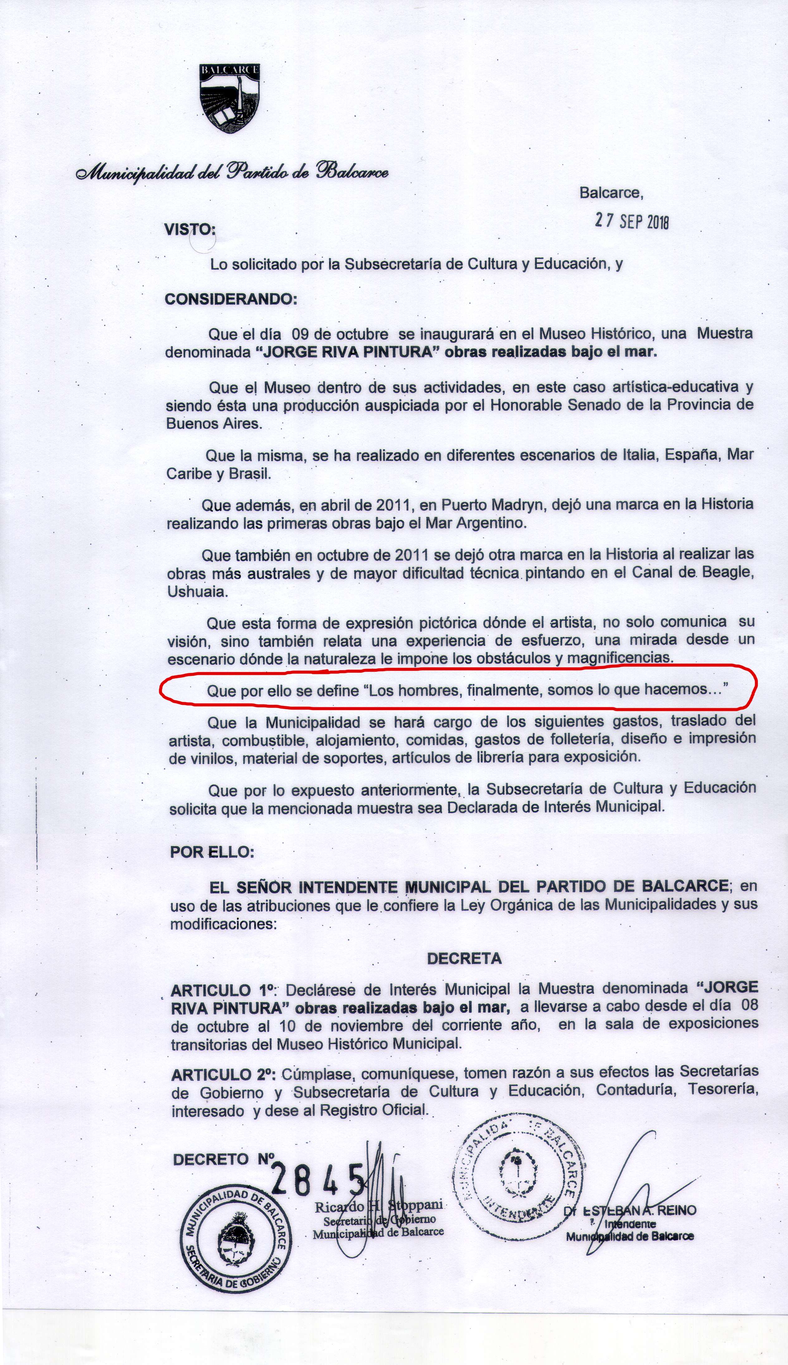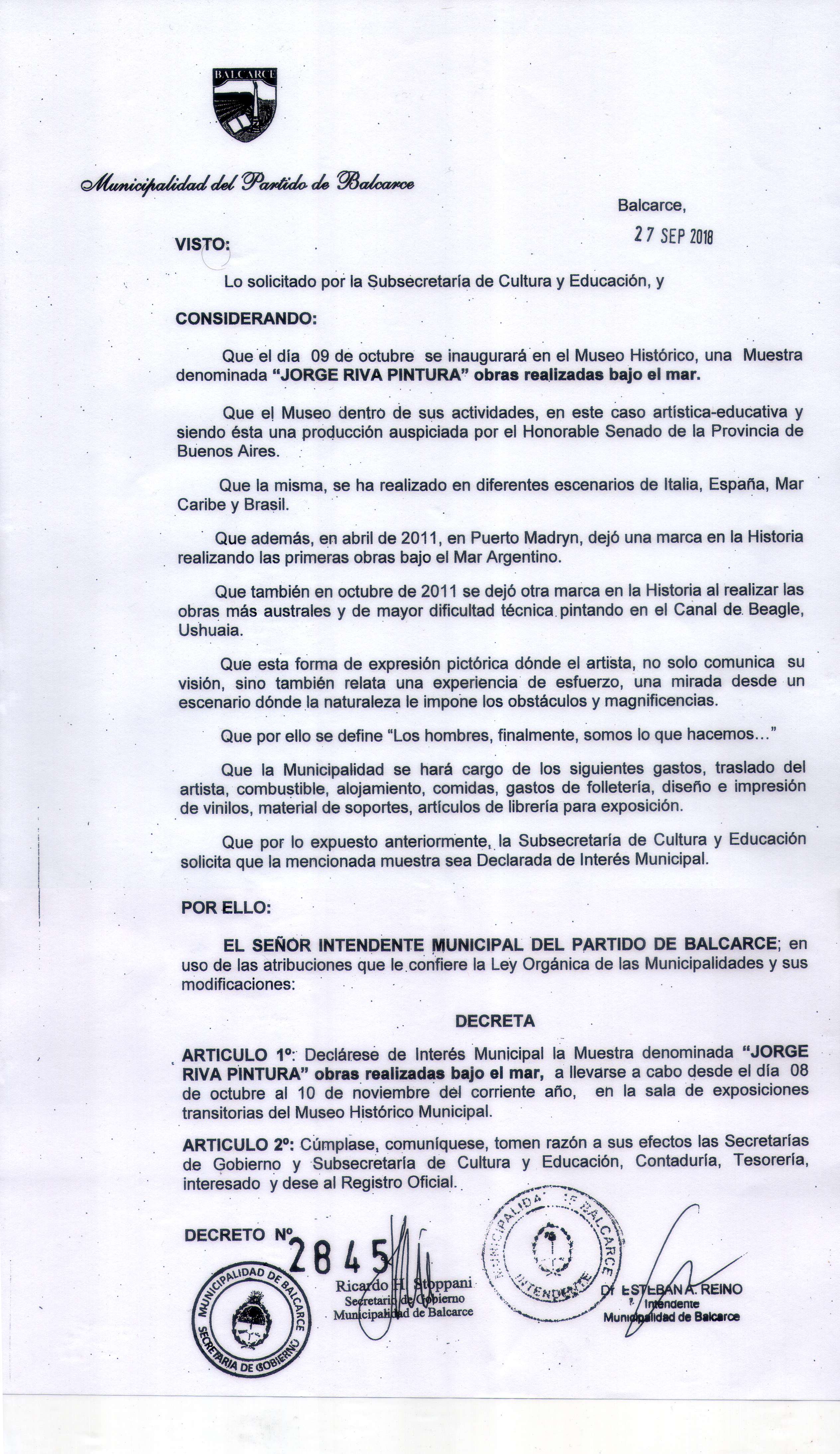 Disciplina: pintura Obra: Muestra de pinturas bajo el mar Fuente: Municipalidad de Balcarce Descripción: La muestra fue declarada de interés para la sociedad.